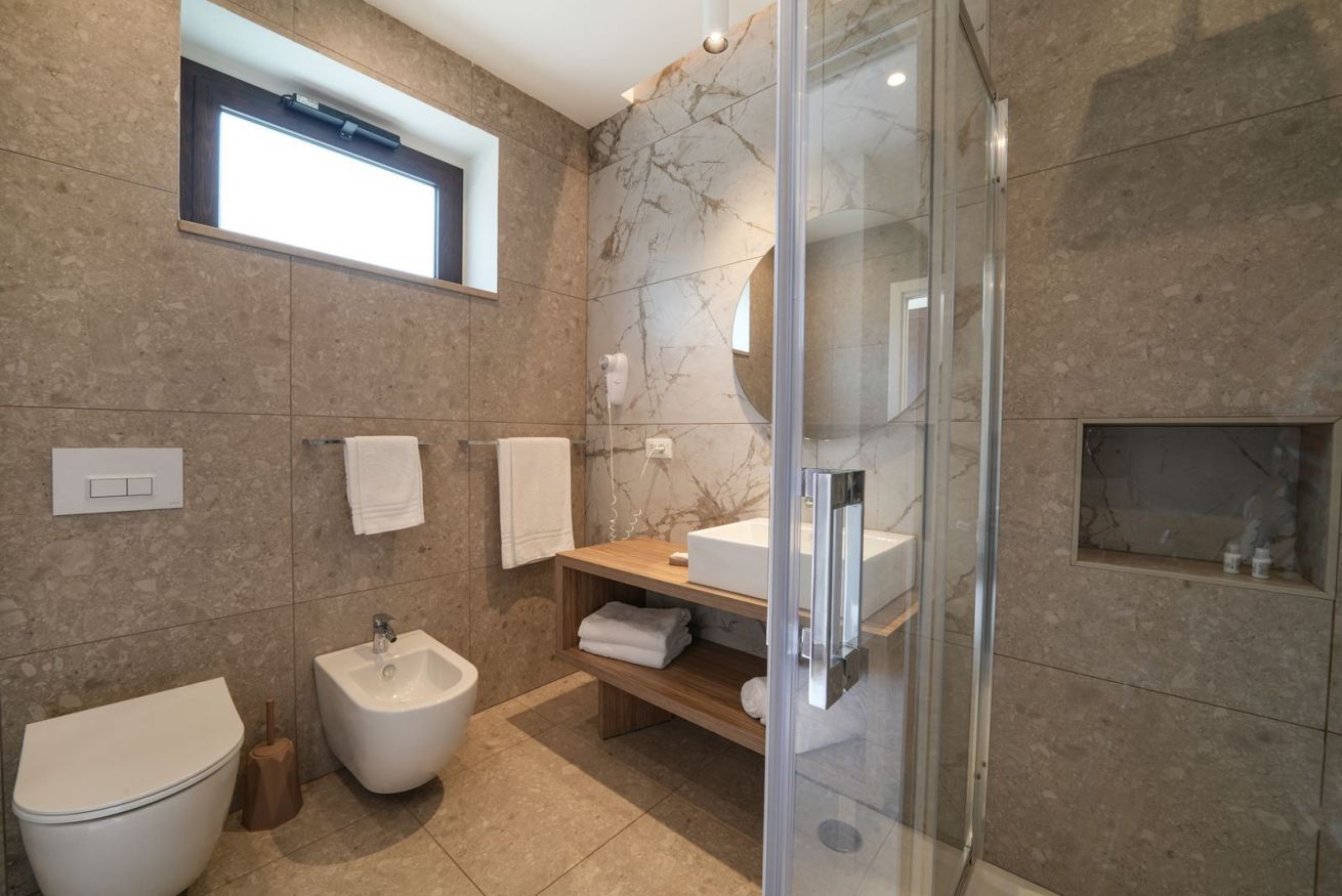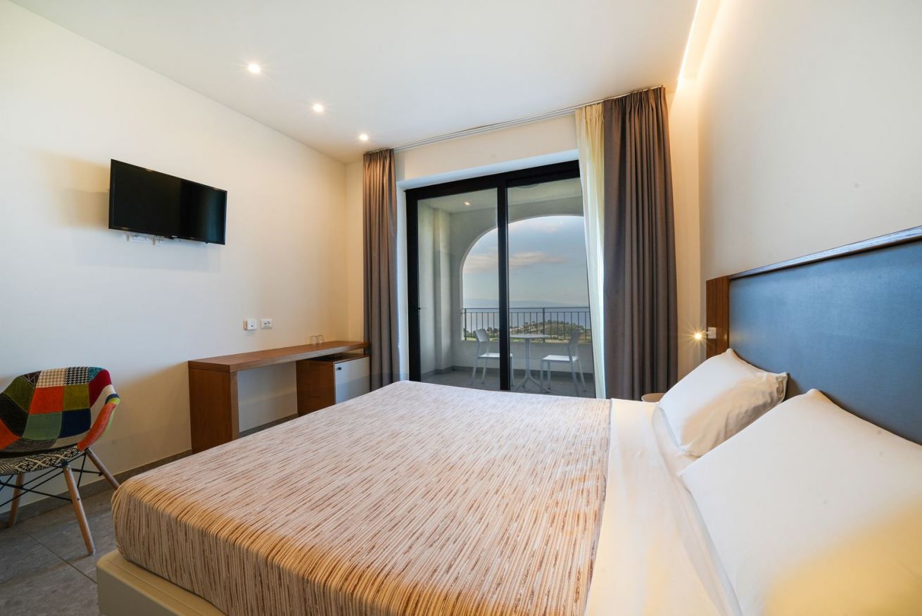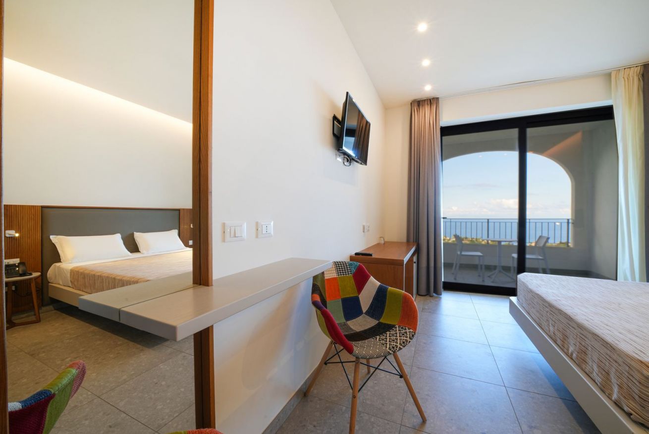Camera di nuovissima costruzione (2021) in posizione panoramica con ampia veranda vista mare frontale dotata di aria condizionata, mini frigo, tv, phon e cassetta di sicurezza.